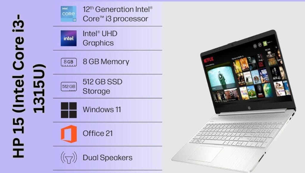 1. HP 15 (Intel Core i3-1315U) – ₹32,990 (ऑफर्स के बाद)